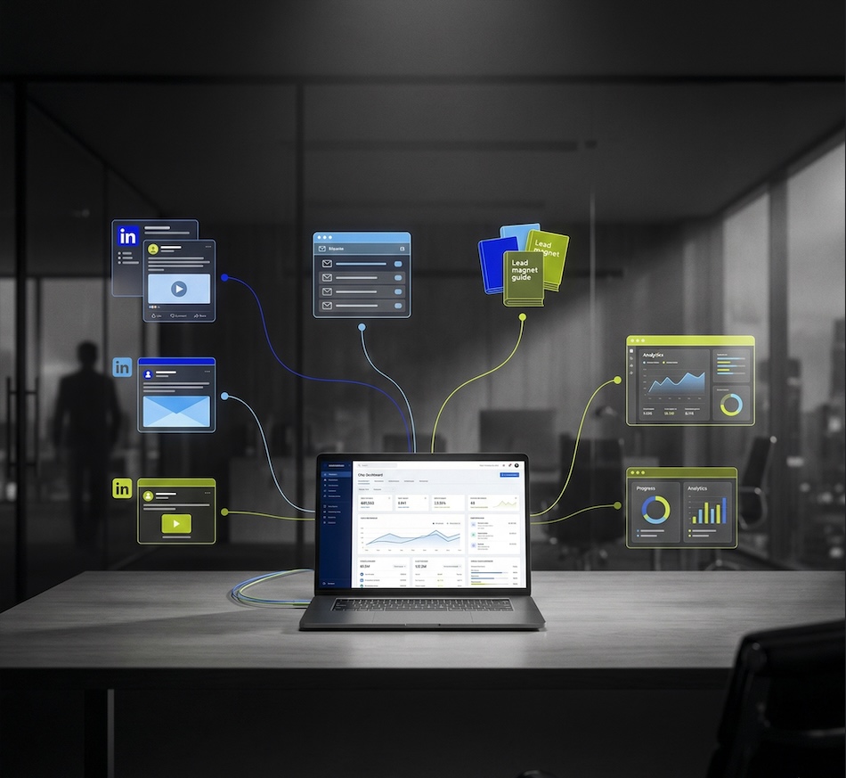 El prospecto recibe el mismo relato en el blog, en LinkedIn y en el email, sin contradicciones que generan desconfianza.